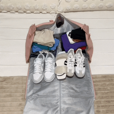 RelaxAir fits up to 14 days of outfits while staying neat and carry-on ready. No overflowing zips. No crushed clothes. No messy piles.
